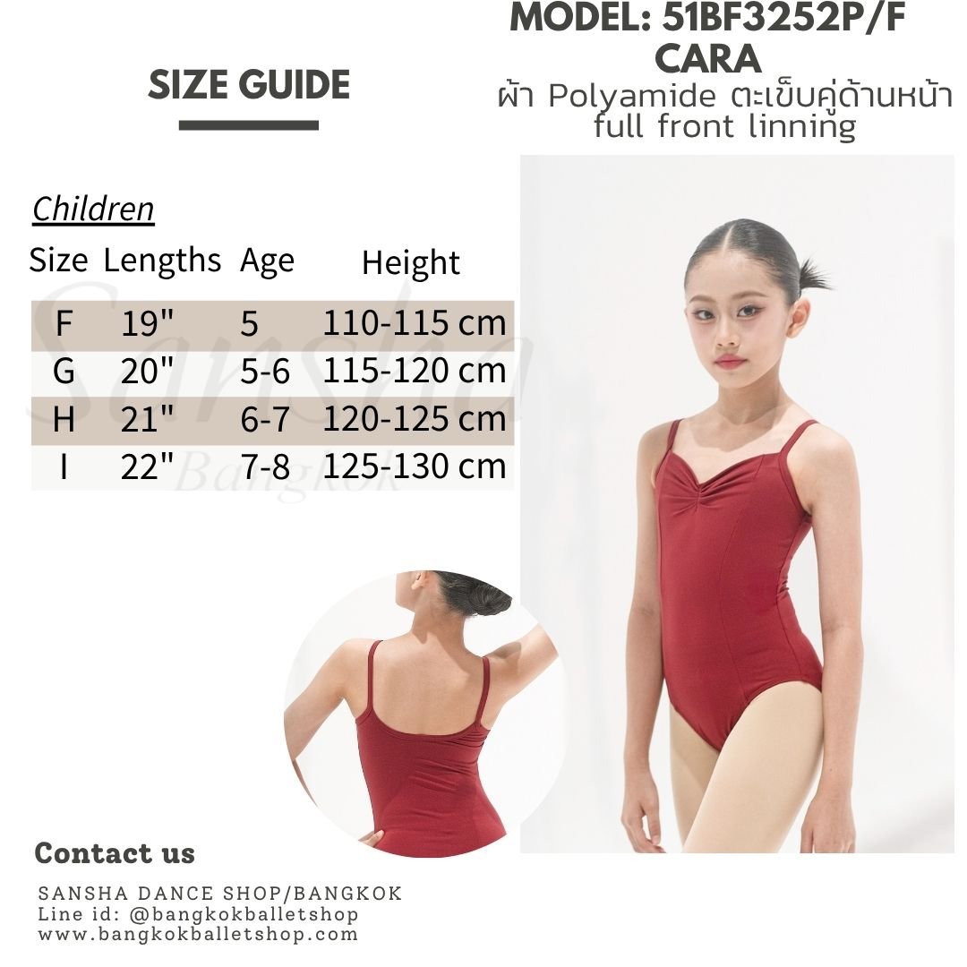 Cara Camisole Leotard  คอเสื้อทรง Sweetheart พร้อมจีบที่หน้าอกเพิ่มความเป็น ballerina ได้อย่างลงตัว ในขณะที่ Princess Seam ช่วยให้ทรงกระชับและเน้น line ร่างกายได้อย่างสวยงาม ผ้ายืดหยุ่นสูงนุ่มสบาย ใส่ได้ทั้งในห้องซ้อมและบนเวที